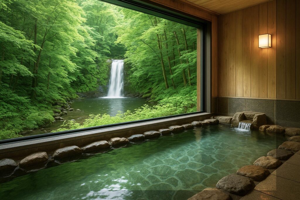 辺久町東部の深い森に佇む源泉かけ流しの温泉施設。アルカリ性単純泉は肌当たりがやわらかく、入浴後はしっとりすべすべに。大きなガラス窓越しに四季折々の緑を望める露天風呂が自慢です。内湯には寝湯やジェットバスもあり、疲れた身体を多角的に癒します。木の香りと鳥のさえずりに包まれながら、心ゆくまでリラックスしてください。
